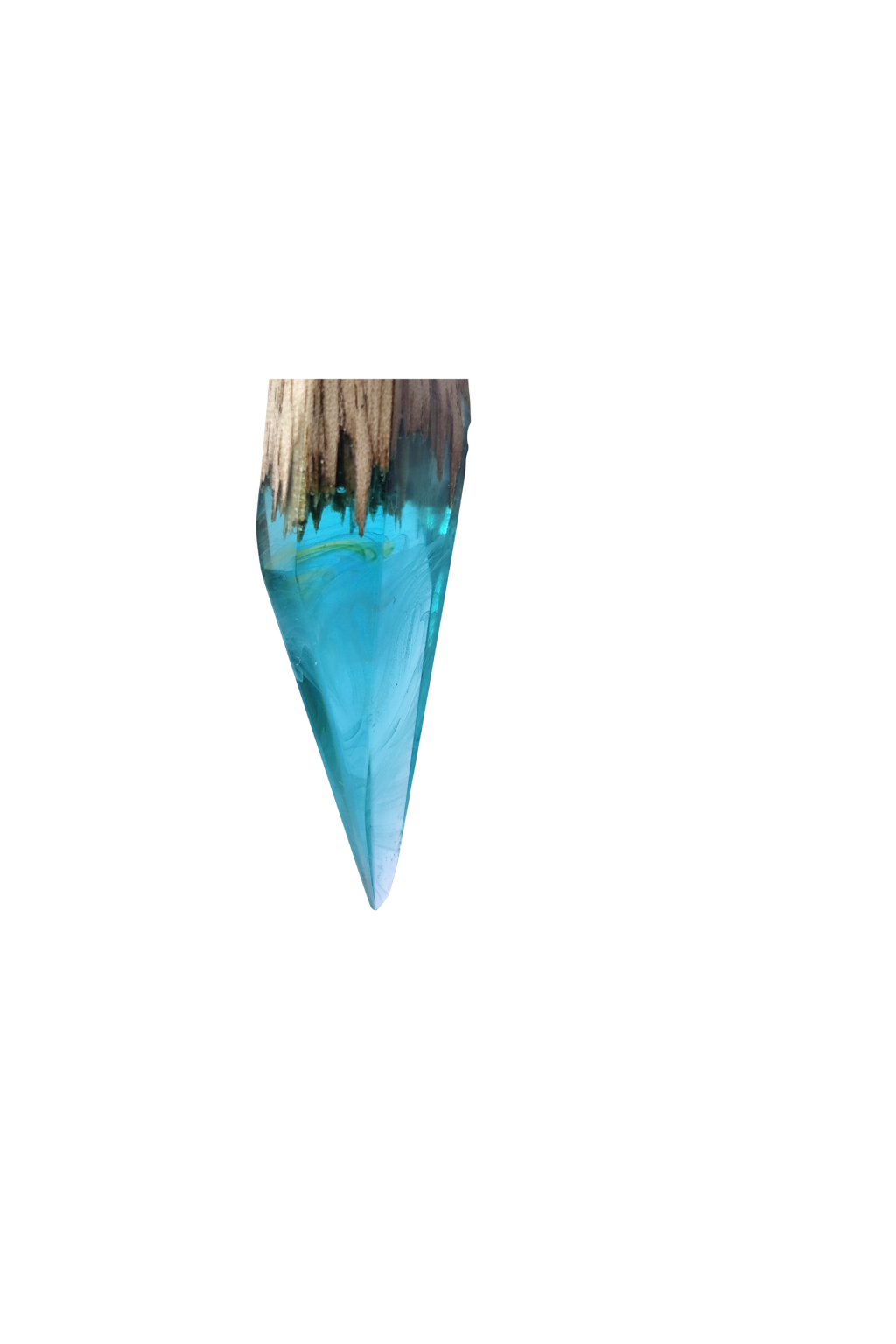 Jemný dřevěný krystal „Polární záře“ z epoxidové pryskyřice v kombinaci s přírodním dřevem. Ručně vyráběný originál s lehkým a elegantním vzhledem.