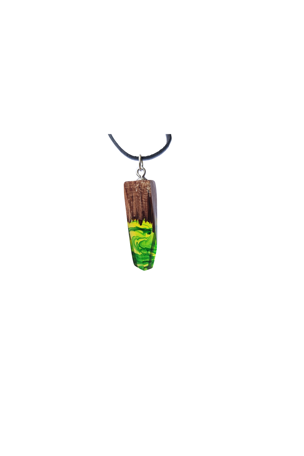 Zelená mlha Zelená mlha – přívěsek z epoxidové pryskyřice a dřeva